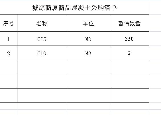 城源商廈室外景觀工程商品混凝土采購
